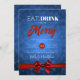 Festa Elegante de Natal / Festa de Férias / modelo de Convite de festas de inverno com a design de tipografia "Comer, Beber e Ser Feliz" e luzes de boque em Excelente para usar em festas de janto Corporativo, bolas e galas de inverno, gravata negra / eventos e festas de escritório.