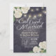 Comemora-se e Casa-se com Celebração de Casamentos/Cartões Chás de panela - Flores de Hydrangea Branca Elegante e Luzes de Cordas no Marinho de Vintage Fundo de Linhagens Florais Azuis. Um Design perfeito para o seu grande dia. Todo estilo de texto, cores, tamanhos podem ser modificados para ajustado das suas necessidades!