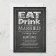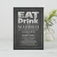 Coma Bebida Se Case Com Convites De Festa de noivado Engraçados. modelos de convites para festas de noivado de tipografia de quadro de rico que são perfeitos para sua celebração. Design com um toque de estilo de vintage. Peça sua primeira amostra hoje. Este convite para festa de noivado foi criado por superdazzle.com