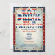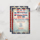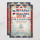 Uma paleta americana de convite de festas de tipografia moderna vermelha, branca e azul para amigos, entes queridos e família. Celebrar o Partido Independência no Dia 4 de julho com estrelas e listras em estilo. A modelo design apresenta uma caligrafia moderna para "EAT DRINK AND BE PATRIOTIC" num pano de fundo azul pastel de chique com uma fronteira patriótica. O lado inverso tem um padrão correspondente. O texto pode ser facilmente personalizado.