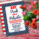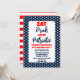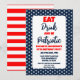 Coma, beba e seja patriótico: Dia de Independência Americana/4 de julho de convite de aniversário com estrelas e listras em vermelho branco e azul