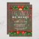 Convite festivo, rústico para festas de férias - Coma, Beba e Seja Feliz design para convidar amigos, entes queridos e colegas de trabalho para fazerem parte da celebração de feriados no seu país. Lê 'Coma, Beba e seja Feliz' em letras brancas, rústicas no topo. Shabby falso burlap castanho parece fundo. Adornada no topo com a típica terra do pinheiro de férias e os sinos de ouro com arco vermelho decorado com flocos de neve com fita vermelha. A parte inferior coordena a pátria com flocos de neve dourados e arco e fita vermelha. As estrelas coloridas do Natal vermelho e verde, com efeito brilhante e brilhante, estão dispersas pelo fundo. Ele diz "Por favor, junte-se a nós" em uma inscrição vermelha combinando com a sombra. Os detalhes do restante da festa de feriado personalizada estão abaixo em branco. A parte de trás tem uma bússola rústica e estrelas de fundo. Nota: Todas as imagens são impressas. Não é uma pá real ou qualquer tipo de brilho ou brilho. Há diferentes estilos e tamanhos de convite também. Convites para festas de férias para comemoração de chic no seu país. Adequado para festas de férias, eventos de feriados corporativos, festas de Natal abertas, etc.