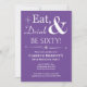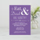 Convide amigos e família para ajudá-lo a comemorar seu aniversário de 60 anos com este branco retrógrado e engraçado no convite de festas Lilac Purple Comer, Beber e Sessenta!.
