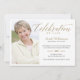 Homenageie uma vida bela com nosso convite de memorial de celebração de vida com foto. O design apresenta "Celebração" em uma tipografia elegante em dourado falso com espaço reservado para foto para exibir a foto de seu ente querido. Projetado em um layout simples para exibir os detalhes do serviço memorial.