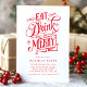 Convite para Festa de Fim de Ano Comemorar com Comida, Bebida e Listras Vermelhas. Personalize este design de festa de fim de ano personalizado com os detalhes da sua festa. Perfeito para um jantar de Natal em família ou para uma festa de Natal corporativa!