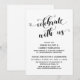 Aqui está uma escolha bonita para as suas necessidades de celebração pós-casamento. Sobre um fundo branco editável, coloquei um gráfico de tipografia que diz "celebre conosco" apresentando uma fonte script elaborada e decorada com corações caprichosos. O branco pode ser alterado para qualquer cor de fundo que você preferir. Use os campos do modelo para adicionar seus próprios detalhes e clique para personalizar ainda mais se desejar fazer alguma modificação adicional. Todas as camadas estão desbloqueadas para permitir todo o controle de posicionamento e dimensionamento que você desejar.