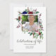 Esta atraente celebração do memorial PHOTO, convite ao funeral, apresenta bonito aquarela ilustrada com rosas vermelhas profundas burgundy marsala, azul real e flores cor-de-rosa pinceladas com a moderna tipografia tradicional.Os campos de modelo em frente e atrás deste convite para comemoração do evento de vida permitem a inclusão de todos os detalhes do serviço, almoço que se segue etc. Para itens correspondentes e edições personalizadas, contacte o Designer LeahG.