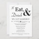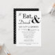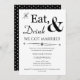 Convide amigos e familiares para ajudá-lo a celebrar seu casamento recente com este convite de festa de elopamento Eat, Drink & Be Married! retrô preto e branco funky.