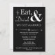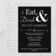 Convide amigos e familiares para ajudá-lo a celebrar seu casamento recente com este convite de festa casual de fuga Eat, Drink & Be Married! retrô branco no preto funky.