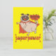 Pug sorridente no estilo cômico super-herói do manto vermelho