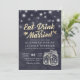 Comece a beber e a casar-se com Celebração de Casamento / Cartões Chás de panela.- Elegante Mason Jar e String Lights no Marinho Blue Floral Linen Background. Um Design perfeito para o seu grande dia. Todo estilo de texto, cores, tamanhos podem ser modificados para ajustado das suas necessidades!