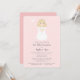 Loura de Porca Comunitária Esta bela e doce design de Primeira Comunhão de uma menina loira segurando seu primeiro rosário está em um fundo rosa com uma pomba branca pacífica. Tome as memórias excelentes da primeira comunhão sagrada do seu filho com este belo design. Confira os acessórios da Primeira Sagrada Comunhão, papelaria e presentes de comunhão.