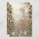 Um convite elegante para festas de férias com flocos de neve brancos elegantes, cones de pínus, sinos de Natal e bolas em fundo de ouro. Estes belos convites de Natal são perfeitos para convites de festas de janto de Natal, convites para troca de presentes de Natal, angariadores de fundos de Natal, convites para bolas de férias e outros eventos realizados durante o mês de dezembro. Use apenas os campos modelo para adicionar suas próprias informações de evento.