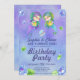 Prepare-se para sua festa de primeiro aniversario das meninas gêmeas com um tema "Sob o Mar". Um fundo azul macio e roxo complementa duas sereias bonito com estrelas douradas. Flores oceânicas, folhas verdes, e conchas reclusos completam este convite para uma festa de primeiro aniversario para meninas gêmeas. Personalize com todas as informações de sua festa.