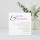 Convite de casamento contemporâneo do ColorScheme Wedding Basics. Placas achatadas de 5,25" x 5,25" com envelopes brancos. Texto e verso no inverno de 2010/2011, cores de tendência entre o & roxo.