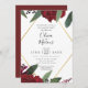 FESTA DE COMPROMISSO | Floral Marsala Burgundy Rico e Elegante cerca esta forma de diamante geométrico com borda dourada com todos os detalhes da sua festa dentro - uma combinação de escrita casual à mão e letras serif formais dá a este um visual elegante e sofisticado. A parte de trás é um burgundy sólido avermelhado capturado das flores (você pode facilmente alterar isto escolhendo a opção personalizar mais).