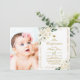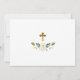 Flores Brancas e Moldura Dourada. Convite de comunhão de bebê impresso personalizado e acessível. Este lindo desenho tem flores brancas em aquarela com moldura dourada. Personalize o design com os detalhes da festa de comunhão do seu filho. O verso tem uma cruz dourada com flores de aquarela ou use o espaço para adicionar texto e fotos adicionais. Clique em Personalizar para escolher qualquer cor de fundo e editar as fontes e cores do texto para criar um convite de comunhão exclusivo e único para sua filha