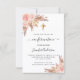 Um fundo de aparência metálica falsa rústica rosa dourada e cor-de-rosa. Decorados com flores em ouro rosa, rosas, erva-pampas e uma cruz dourada. Personalize e adicione um nome e detalhes.