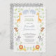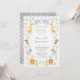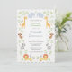 Animais adoráveis da selva com videiras doces e folhas rodeiam este adorável convite da Comunidade. Elefantes azuis fazem uma cruz no topo do convite com girafas, macacos, zebras e leões cercando-o. Seu texto está no meio de tudo para anunciar seu grande dia.