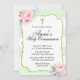 Apresentando flores cor-de-rosa doce e um fundo de menta macia, este convite é adequado para todas as ocasiões.