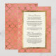Este fundo pintado à mão com aquarela varia de um rosa brilhante para um coral quente quase laranja em uma lavagem de aquarela sutil e elegante, pintada à mão. Um círculo geométrico, padrão clássico art déco de concha, é renderizado em uma folha de ouro falso e uma aparência de camadas falsas que é graficamente projetada para enganar o olho. Suas direções de condução e acomodações de hotel são personalizadas usando os campos do modelo. Se você precisar de ajuda com isso, basta nos enviar uma mensagem, ficaremos felizes em ajudar a ajustar as coisas para você uma vez que você tenha todas as suas informações no formulário. NOTA: Este é um design impresso plano, não há brilho ou tinta metálica dourada real usada.
