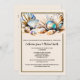 Lindos amêijoas iridescentes e conchas de ostras em tons de azul, rosa, bege, marfim e marrom estão aninhados contra um bronzeado com leve fundo colorido de areia rosa e sotaque que tem modelos pretas para sua redação personalizada. O conteúdo generativo parece brilhar e brilhar e é definido em relação a uma cor de fundo de sua escolha. Esta praia; destino litorâneo; ilha tropical; design de tema náutico é ideal para um chá de panela; aniversário ou qualquer ocasião especial de praia. Não se esqueça de apagar o texto no verso, se não for necessário!