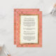 Este fundo pintado à mão com aquarela varia de um rosa brilhante a um coral quente, quase laranja, em uma lavagem de aquarela sutil e elegante, pintada à mão. Um círculo geométrico, padrão clássico art déco de concha, é renderizado em uma folha de ouro falsa e uma aparência em camadas falsa que é graficamente projetada para enganar o olho. Suas direções de condução e acomodações de hotel são personalizadas usando os campos de modelo. Se precisar de ajuda com isso, basta nos enviar uma mensagem, ficaremos felizes em ajudar a ajustar as coisas para você uma vez que você tenha todas as suas informações no formulário. NOTA: Este é um design impresso plano, não há brilho ou tinta metálica dourada real usada.