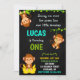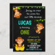 Convite de aniversário de macaco Convite para primeiro aniversario de Rapaz Um convite para a festa da selva.