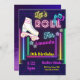 Prepare-se para entrar numa comemoração de aniversário inesquecível com o nosso vibrante convite de aniversário do Roller Skating! Perfeito para o aniversário de uma criança, este convite define a palco para uma festa de skate épica. Com o seu design de neon capotante, ele certamente capturará o entusiasmo do evento.