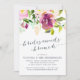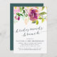 O convite para o brunch das madrinhas florais elegantes e modernas apresenta um buquê de flores de aquarela vibrantes e coloridas em tons de violeta, burgundy, creme e blush, com sotaques botânicos verdes e exuberantes. Personalize com seus detalhes de brunch-maids na elegante tipografia azul da meia-noite destacada com caligrafia de estilo manuscrito. Cartões invertidos a verde-jasper sólido.