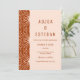Este padrão tribal de lama, convite para casamento em laranja queimado e natas de terno, boêmia e tropicais. Uma mistura moderna de estilos étnicos.