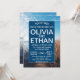Este moderno convite azul marinho náutico é perfeito para um cruzeiro ou festa de noivado de praia, casamento após festa, aposentadoria, graduação ou qualquer evento feliz. A simples design apresenta uma bela paisagem marinha, ondas marítimas, animais marinhos e recifes coloridos.