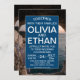 Este moderno convite azul marinho náutico é perfeito para um cruzeiro ou festa de noivado de praia, casamento após festa, aposentadoria, graduação ou qualquer evento feliz. A simples design apresenta uma bela paisagem marinha, ondas marítimas, animais marinhos e recifes coloridos.