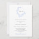 Um convite de casamento elegante e tradicional com uma crista de escudo em azul claro com seu monograma no centro. Personalize com seus detalhes no texto da cinza.