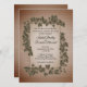 Um belo convite de cor de outono com uma vinha sobreplantada. Coloque os primeiros nomes do casal de um lado com toda a informação do casamento e saudação no reverso. Por favor, verifique triplicamente todo o seu texto.