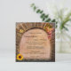 Convite de casamento com um clássico arco romano com uvas, uma lanterna e girassol com atrás uma pintura de vinhedo com vinho e óculos. Bonita para um casamento de vinhedo ou vinícola ou outra celebração temática de vinho. Este convite tem uma placa RSVP correspondente.