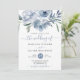 O convite de casamento floral de cor azul-poeira. Personalize nomes, datas e informações.