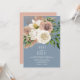 Convide seus hóspedes com este maravilhoso convite para o casamento floral de bolos azuis, apresentando um arranjo cativante de cor-de-rosa-pincel, rosas de marfim e verde-azul. O fundo azul suave e o design floral romântico tornam este convite perfeito para casamentos rústicos, de boho ou de jardim. Personalize-o facilmente com seus detalhes de casamento para um toque verdadeiramente personalizado.
