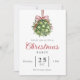 Estes convites para a festa de Natal apresentam um retrato em aquarela de uma bola de névoa pendurada por um arco de fita listrada vermelha e branca.