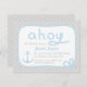 Um convite minimalista, simples e clássico para aquele chá de fraldas temático náutico. Uma utilização inteligente da corda azul para formar a fronteira e a palavra "Ahoy" que é usada na navegação. Uma âncora na esquina com um pequeno coração no topo. Fundo de cinza com padrão de bolinhas branco. Para as mamães serem quem espera um bebê. Personalize facilmente com os detalhes da festa.