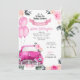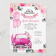 Muito fofo, convite de Drive by ou Drive Through de chá de fraldas com um Carro vintage rosa Rosas Cor de Água Rosa. Todos os campos são editáveis. Legal ideia para um chá de fraldas pandêmico.