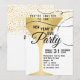 Celebre o Ano Novo com estilo e convide seus convidados com este convite chique e festivo da I Love Digis. Este design apresenta um copo de vidro dourado brilhante com confetes dourados e floreios pretos ondulados. O convite diz "Você está convidado para nossa Festa de Ano Novo" com seus detalhes para personalizar abaixo. O verso do cartão tem uma pitada de confetes dourados falsos e o ano para você mudar para o atual. Criado pelo renomado artista mundial © Tim Coffey.