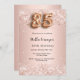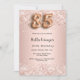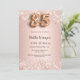 Um convite moderno, na moda e glamouroso para uma 85ª festa de aniversário. Um fundo rosa dourado com confetti.O nome é escrito com um script de estilo manuscrito. Personalize e adicione os detalhes da sua festa. O número 85 é escrito com uma fonte de estilo balão, script.