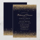 Convite de Jantar de Ensaio Moderno Azul-Marinho com Confete Dourado. Belo confete dourado simples e sofisticado contra um fundo azul-marinho. Este design moderno personalizado pode ser facilmente personalizado com seus próprios detalhes.