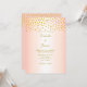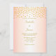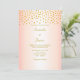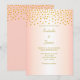 Convite de casamento com visual metálico dourado chic e confete em tons rosa dourado. A frente tem texto dourado e o verso tem dois anéis dourados. Cartões de convite de casamento elegantes em rosa dourado. Os cartões também podem ser personalizados para aniversários, graduações, nascimentos, chá de bebês e outras celebrações.
