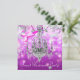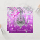 Convite de festa Elegant Sweet Sixteen rosa e roxo com lustre. Este convite de festa de aniversário com confetes rosa vibrante e lustre de cristal prateado funciona bem para uma Quinceanera rosa vibrante, festa de aniversário de mulher, festa de aniversário de menina, festa de feriado, festa corporativa ou qualquer outra festa ou evento com tema rosa vibrante ou lustre e é facilmente personalizado simplesmente escolhendo o botão laranja "Personalize!" para começar a adicionar os detalhes do seu evento, estilo de fonte, tamanho e cor da fonte e texto. Por favor, note que todos os desenhos de cartões e convites que você encontrará na Zazzle são gráficos impressos sem joias, laços, relevos, rebaixos ou peças ou partes adicionadas.