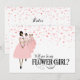 Damas de honra com buquê e brilho rosa. A frente diz "Você será minha Menina das Flores?" A parte de trás é personalizável para refletir seu sentimento e personalizar com o nome da menina das flores. Também estão disponíveis Dama de Honra, Dama de Honra Júnior e Dama de Honra Júnior.