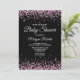 Convite Confetti Chá de fraldas Preto, Brilhante Rosa, Con