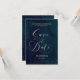 Uma "salve a data" de caligrafia, apresenta um fundo de aquarela azul escuro com a redação em ouro.