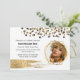 Um maravilhoso design moderno, abstrato e moderno sobre um fundo branco estrelado com escovas ásperas em ouro falso, no qual pedaços de falso ouro confetti descansam. Eles têm bolinhas de ouro pretas e falsas abaixo deles e modelos pretas para sua redação personalizada aparecem. Uma imagem de hexágono repousa na borda inferior direita e a sensação geral é elegante, chique e luxuosa. São ideais para aniversário, graduação, noivado, aniversário e festas de casamento, assim como para chás de panela.